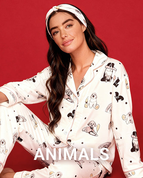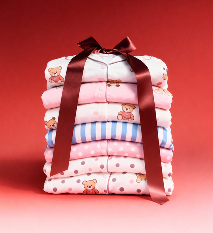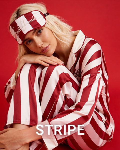 Fine Stripe Abstract Cute Print Lapel Tie-waist Pajama Set