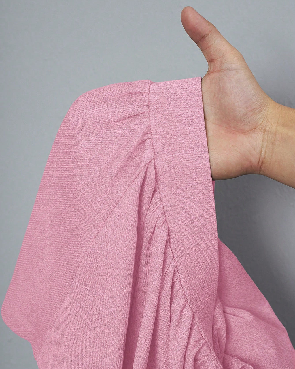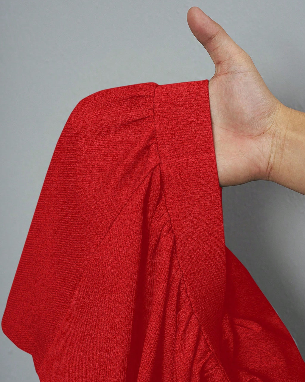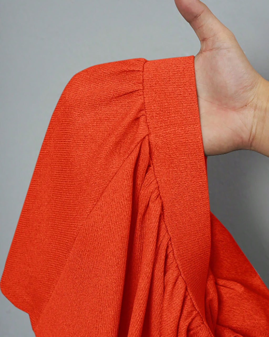 - Details: Short Sleeve Design, Ruched Waist Detail, Flared Ruffled Skirt, Solid Color, Form-Fitting Silhouette