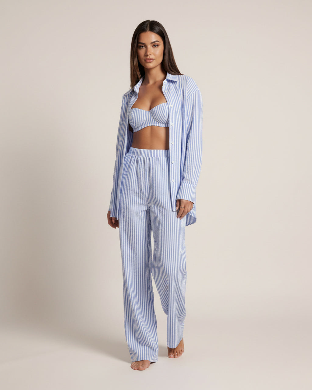 • Casual Striped Print 3Pcs Lounge Set - OMFORT