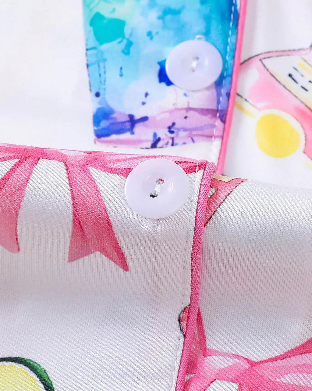 • Champagne Bow Print Button-Up Pajama Set - OMFORT